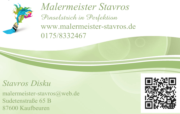 Herzlich Willkommen bei Malermeister Stavros. Ich freue mich das Sie den Weg zu uns gefunden haben.